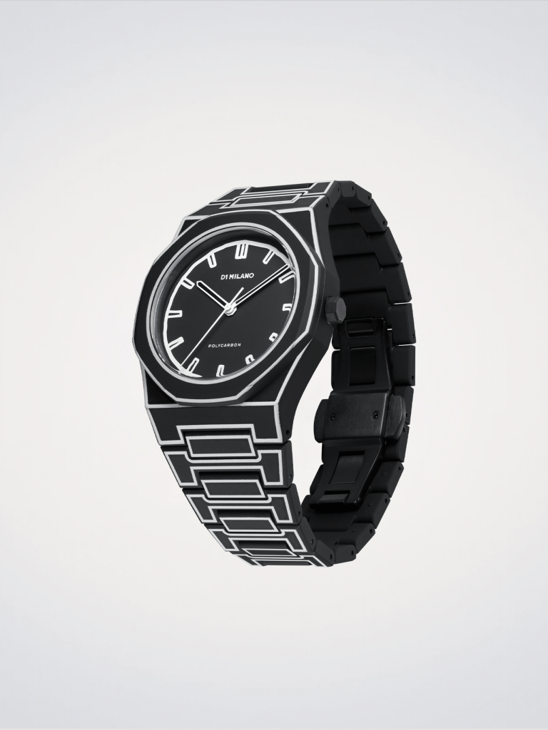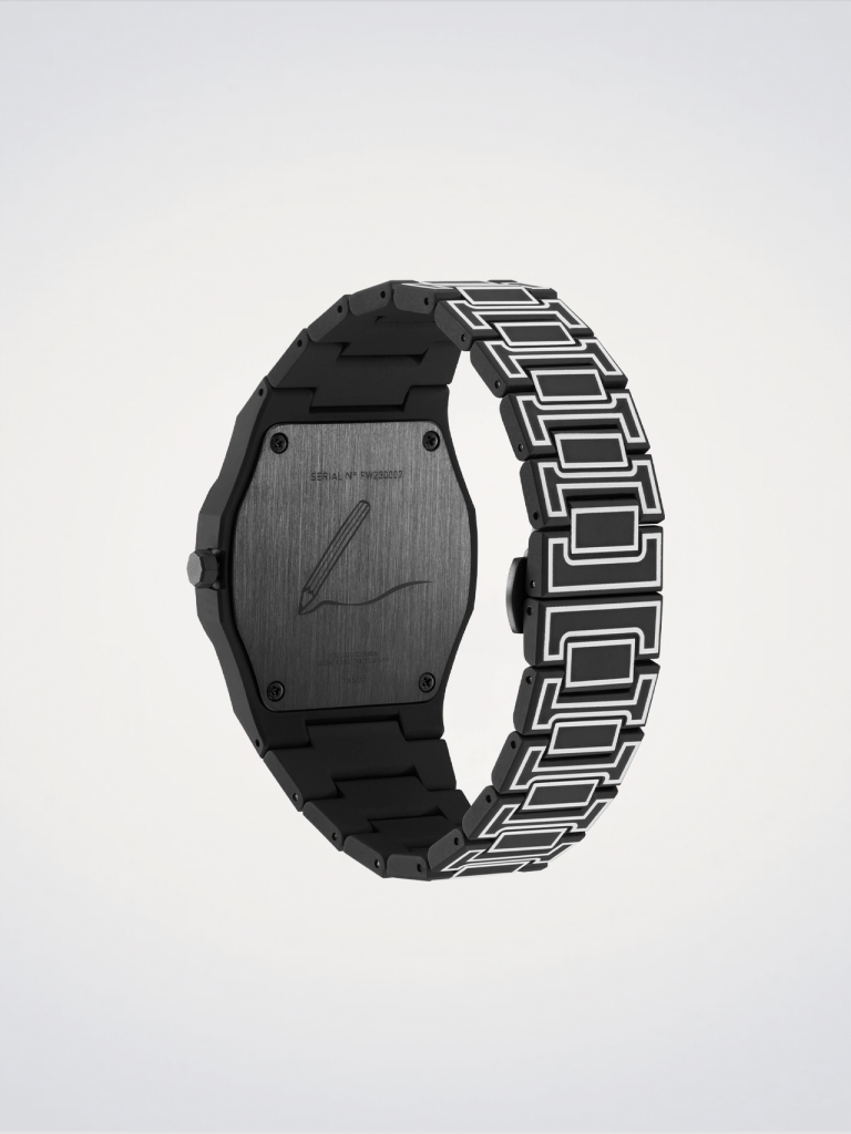 Il D1 Milano Polycarbon Black Sketch è un'edizione speciale: ispirato dal desiderio di dare un tocco personale e creativo allo stile, questo orologio è progettato per replicare l'effetto visivo di uno schizzo bidimensionale.