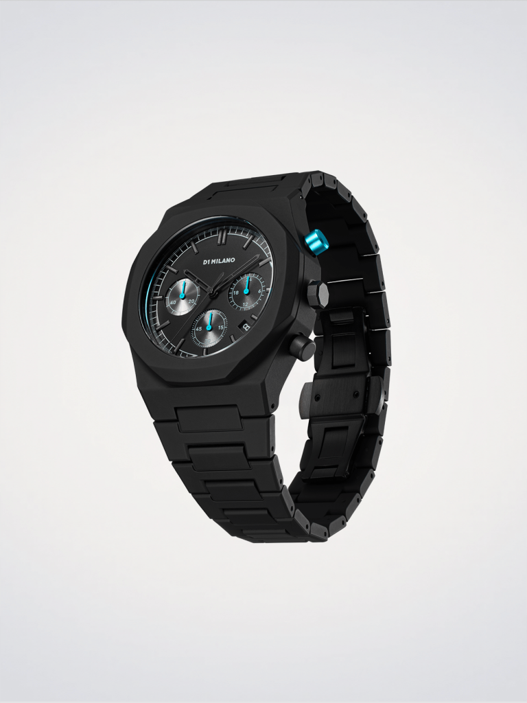 Il design total black interrotto dal quadrante grigio carbone e dai piccoli dettagli blu sulle funzioni cronografiche, lo rende l'accessorio perfetto da abbinare con naturalezza in qualsiasi occasione, garantendo sempre un'eleganza discreta.