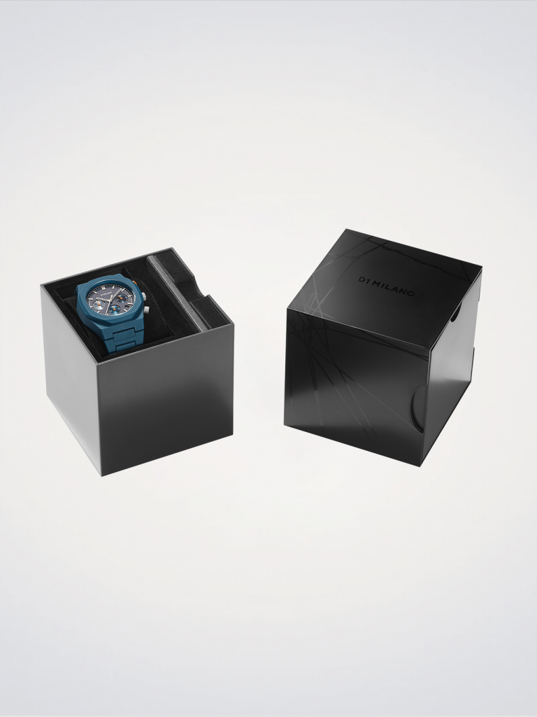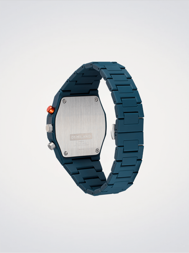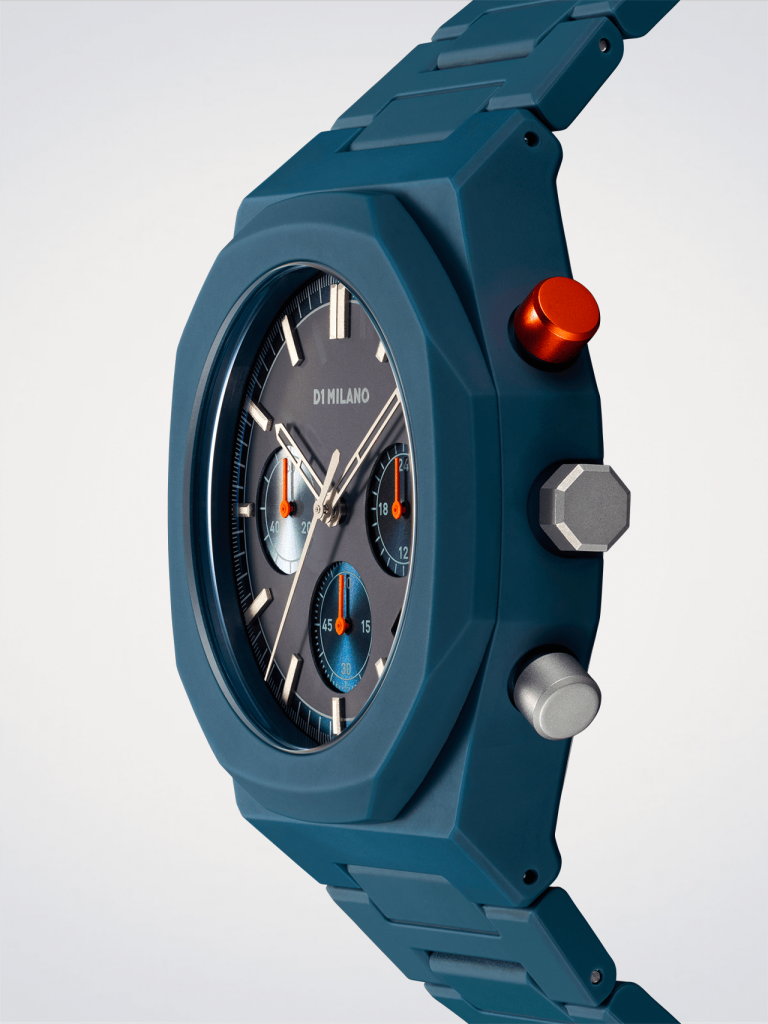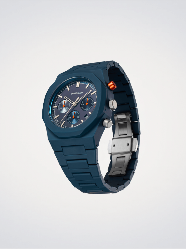 Il D1 Milano Polychrono Neptune Blue è l'accessorio che unisce l'alta funzionalità di un cronografo a un design audace ispirato all'oceano.