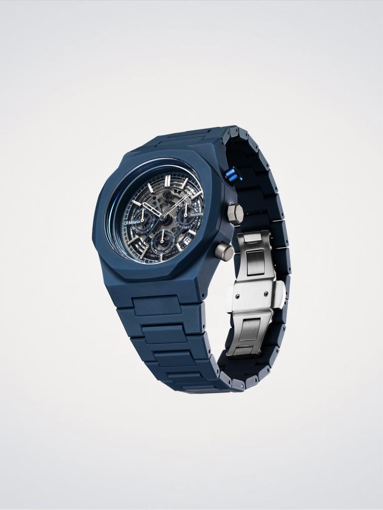 Il D1 Milano Model B, grazie al suo quadrante scheletrato che espone in modo sottile e affascinante i meccanismi interni, rappresenta l'unione dell'iconico design Polycarbon con un'inedita trasparenza meccanica.